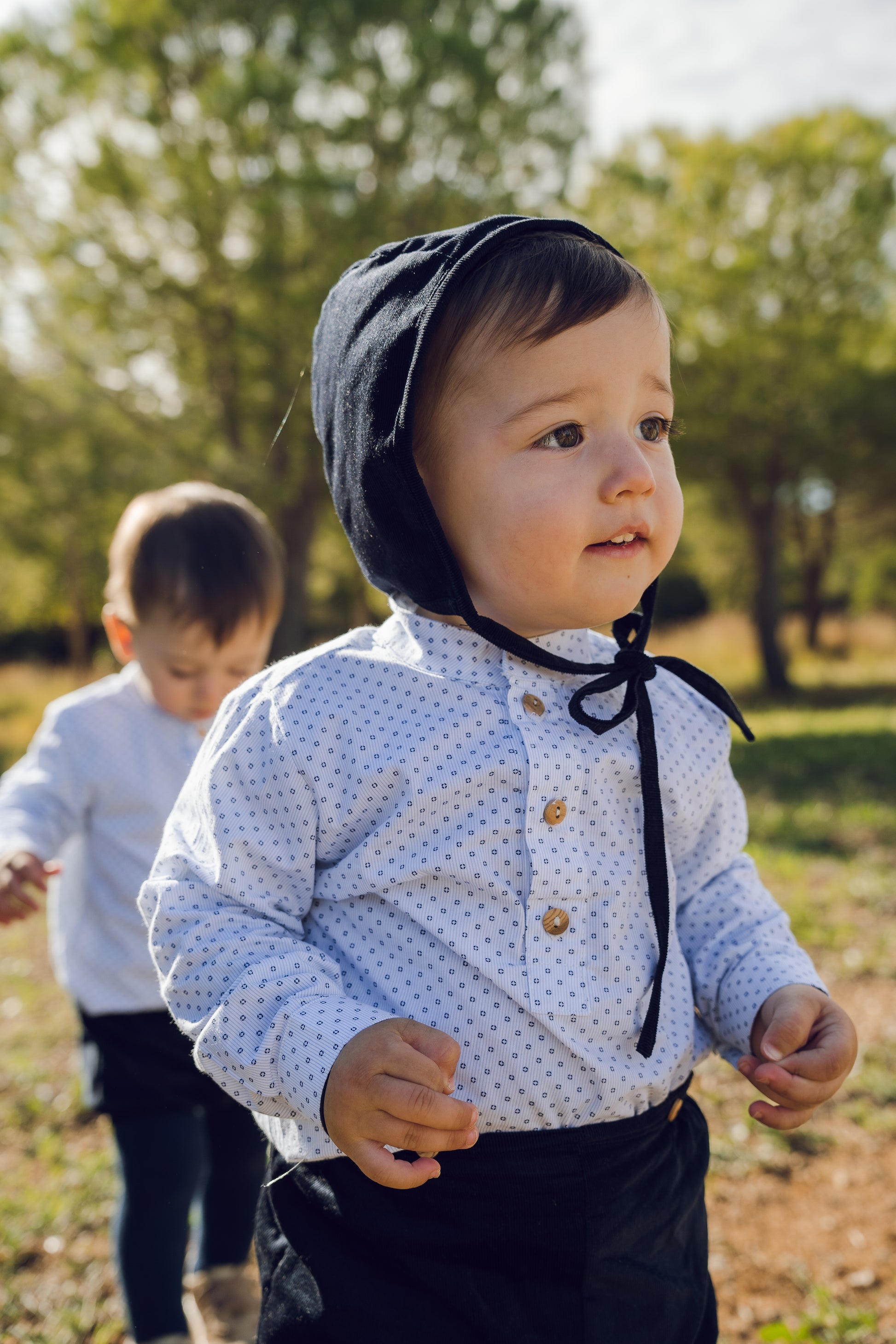 Esta capota infantil está confeccionada en micropana, un tejido suave, cálido y con una textura ligeramente acanalada que aporta un toque clásico y elegante. Su diseño sencillo y envolvente ofrece una protección confortable para la cabeza del bebé, perfecta para los días frescos.
